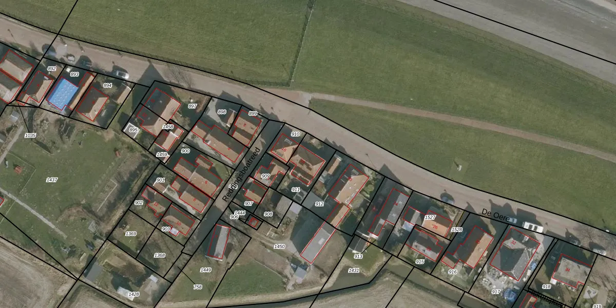 Het perceel waarop De Oere 18 staat heeft een oppervlakte van 213 m². Dit is een middelgroot perceel. De perceeloppervlakte wordt geregistreerd door het Kadaster. Gedetailleerde informatie over de maten van dit perceel kunt u vinden in het rapport Kadastrale kaart met maatvoering van De Oere 18.