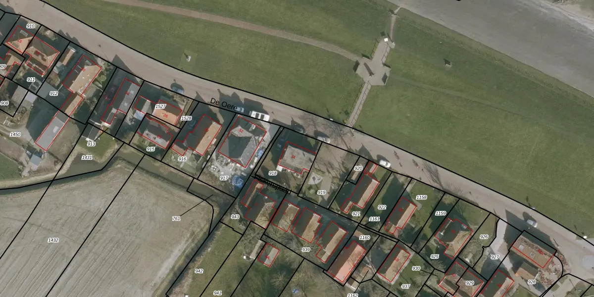 De Oere 34 is gelegen op kadastraal perceel NES02C918. Deze kadastrale aanduiding is uniek en wordt gebruikt door het Kadaster om eigendomsrechten en andere zakelijke rechten vast te leggen. Het perceel maakt onderdeel uit van de kadastrale gemeente Nes.