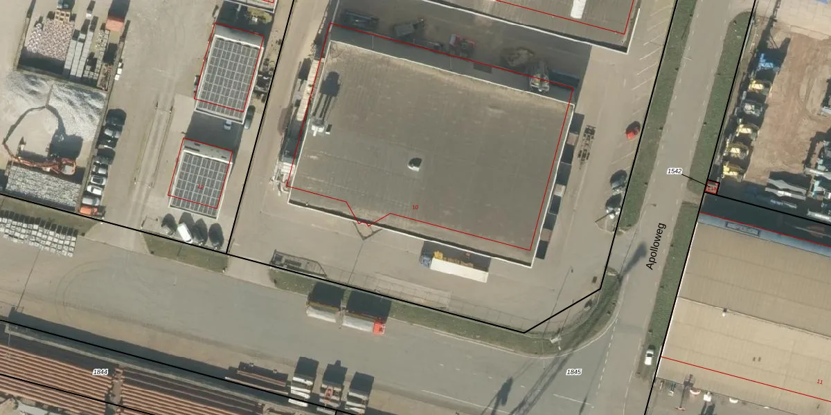 Het perceel waarop Apolloweg 10 staat heeft een oppervlakte van 1,2 ha. Dit is een zeer groot perceel. De perceeloppervlakte wordt geregistreerd door het Kadaster. Gedetailleerde informatie over de maten van dit perceel kunt u vinden in het rapport Kadastrale kaart met maatvoering van Apolloweg 10.