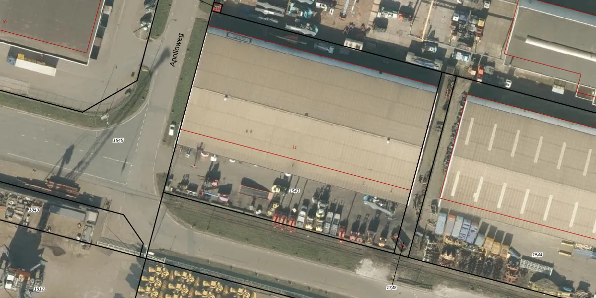 Het perceel waarop Apolloweg 11 staat heeft een oppervlakte van 5045 m². Dit is een zeer groot perceel. De perceeloppervlakte wordt geregistreerd door het Kadaster. Gedetailleerde informatie over de maten van dit perceel kunt u vinden in het rapport Kadastrale kaart met maatvoering van Apolloweg 11.