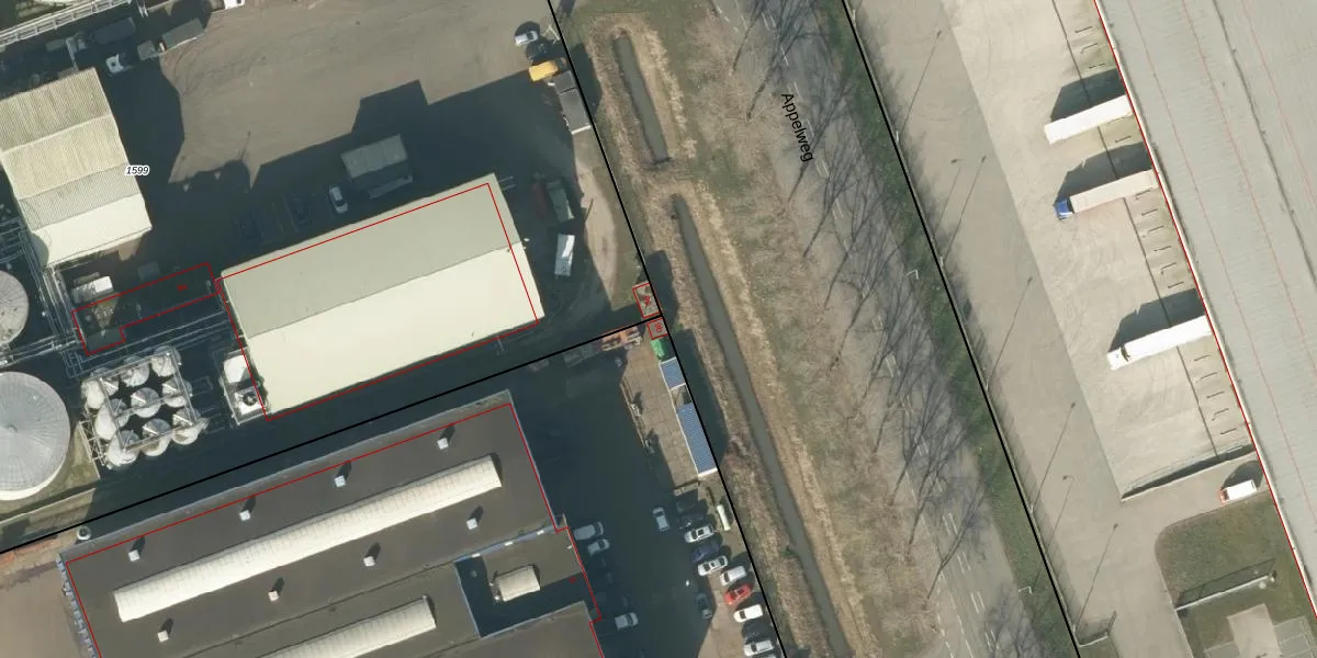 Het perceel waarop Appelweg 9-b staat heeft een oppervlakte van 1,0 ha. Dit is een zeer groot perceel. De perceeloppervlakte wordt geregistreerd door het Kadaster. Gedetailleerde informatie over de maten van dit perceel kunt u vinden in het rapport Kadastrale kaart met maatvoering van Appelweg 9-b.