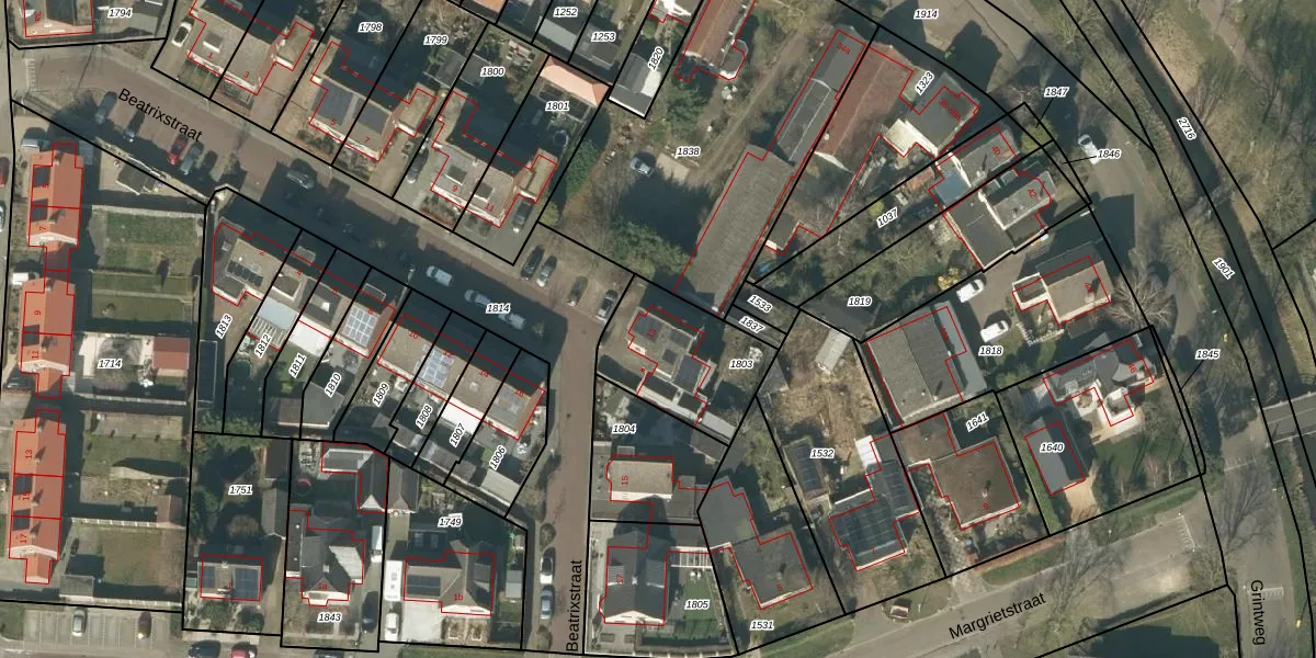 Het perceel waarop Beatrixstraat 13 staat heeft een oppervlakte van 403 m². Dit is een groot perceel. De perceeloppervlakte wordt geregistreerd door het Kadaster. Gedetailleerde informatie over de maten van dit perceel kunt u vinden in het rapport Kadastrale kaart met maatvoering van Beatrixstraat 13.