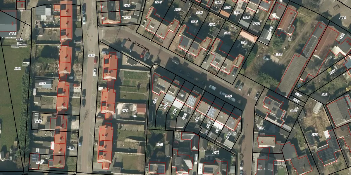 Het perceel waarop Beatrixstraat 4 staat heeft een oppervlakte van 196 m². Dit is een middelgroot perceel. De perceeloppervlakte wordt geregistreerd door het Kadaster. Gedetailleerde informatie over de maten van dit perceel kunt u vinden in het rapport Kadastrale kaart met maatvoering van Beatrixstraat 4.