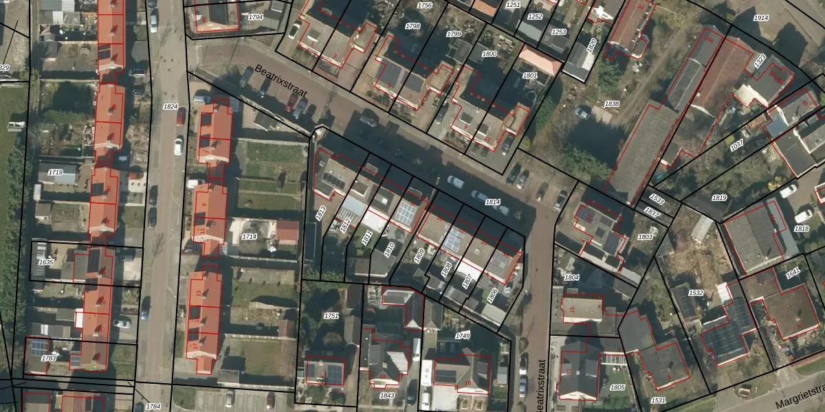 Het perceel waarop Beatrixstraat 8 staat heeft een oppervlakte van 185 m². Dit is een middelgroot perceel. De perceeloppervlakte wordt geregistreerd door het Kadaster. Gedetailleerde informatie over de maten van dit perceel kunt u vinden in het rapport Kadastrale kaart met maatvoering van Beatrixstraat 8.