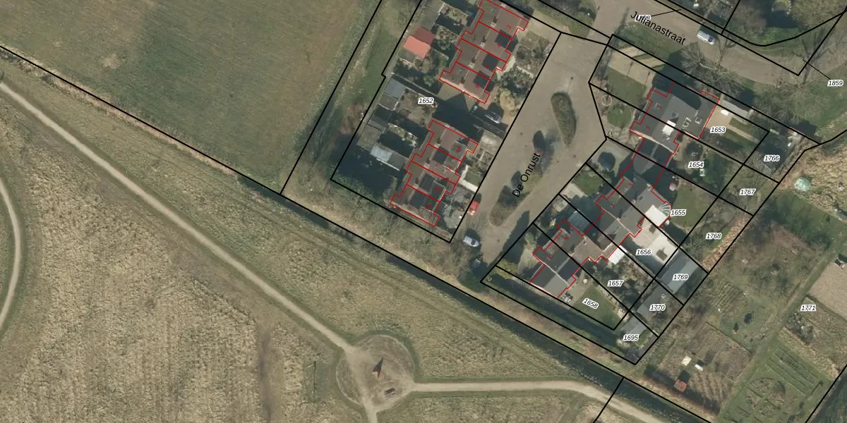 Het perceel waarop De Onrust 16 staat heeft een oppervlakte van 1774 m². Dit is een zeer groot perceel. De perceeloppervlakte wordt geregistreerd door het Kadaster. Gedetailleerde informatie over de maten van dit perceel kunt u vinden in het rapport Kadastrale kaart met maatvoering van De Onrust 16.
