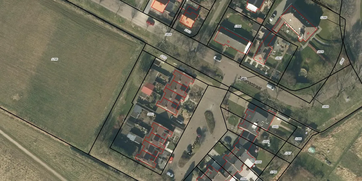 Het perceel waarop De Onrust 4 staat heeft een oppervlakte van 1774 m². Dit is een zeer groot perceel. De perceeloppervlakte wordt geregistreerd door het Kadaster. Gedetailleerde informatie over de maten van dit perceel kunt u vinden in het rapport Kadastrale kaart met maatvoering van De Onrust 4.