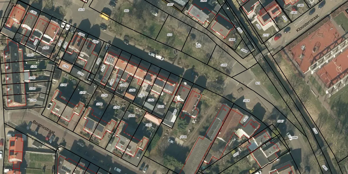 Het perceel waarop het adres ligt is KDT00-D-1253. De afkorting 'KDT00' staat voor kadastrale gemeente Klundert. De gemiddelde perceelgrootte in Klundert is 9244,33 m². Dit perceel is kleiner: de perceeloppervlakte bedraagt 203 m². De grootste perceeloppervlakte in de kadastrale gemeente is 1,66 km². De kleinste oppervlakte bedraagt 0 m². Dit is het enige adres dat aanwezig is op het perceel. In de Basisregistratie Kadaster (BRK) werden de grenzen van het perceel geregistreerd op 27-02-2009.