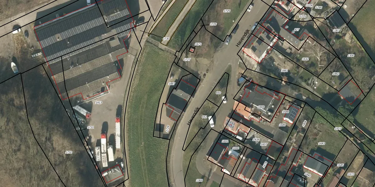 Het perceel waarop Havendijk 3 staat heeft een oppervlakte van 322 m². Dit is een groot perceel. De perceeloppervlakte wordt geregistreerd door het Kadaster. Gedetailleerde informatie over de maten van dit perceel kunt u vinden in het rapport Kadastrale kaart met maatvoering van Havendijk 3.