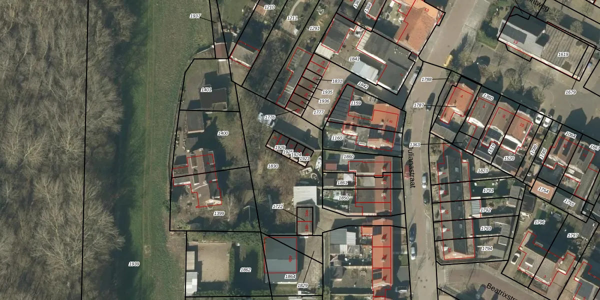 Het perceel waarop Julianastraat 2-k staat heeft een oppervlakte van 18 m². Dit is een klein perceel. De perceeloppervlakte wordt geregistreerd door het Kadaster. Gedetailleerde informatie over de maten van dit perceel kunt u vinden in het rapport Kadastrale kaart met maatvoering van Julianastraat 2-k.