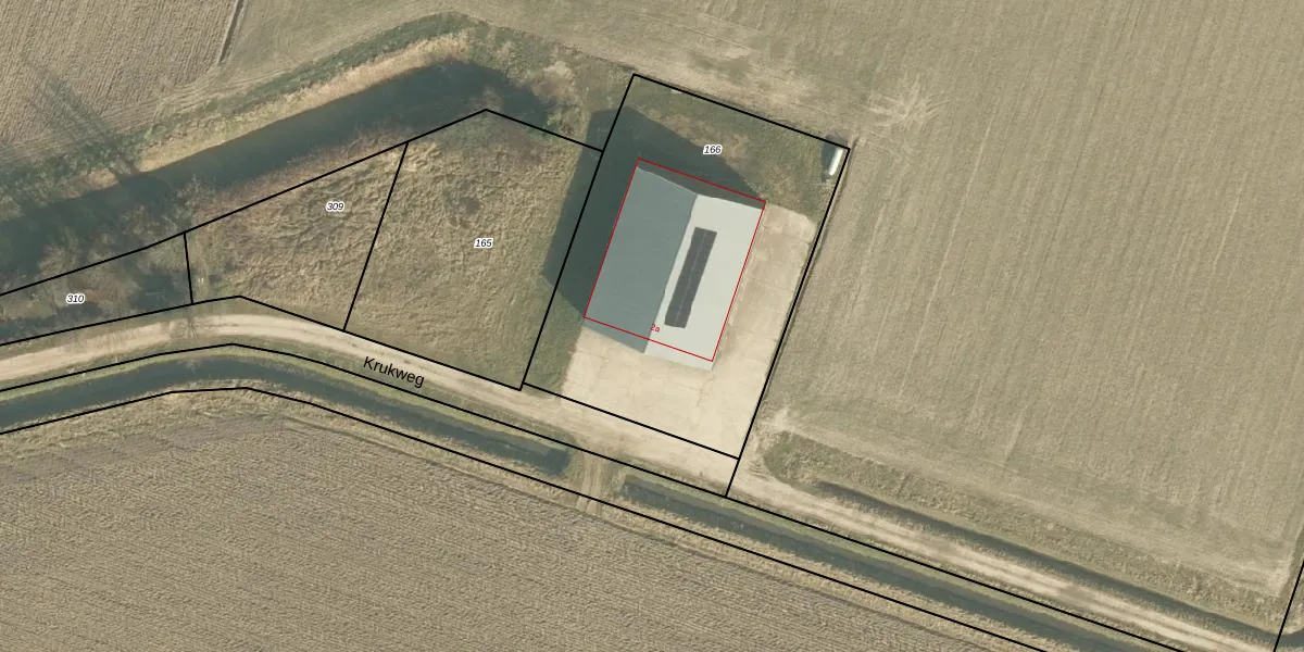 Krukweg 2-a is gelegen op kadastraal perceel KDT00I166. Deze kadastrale aanduiding is uniek en wordt gebruikt door het Kadaster om eigendomsrechten en andere zakelijke rechten vast te leggen. Het perceel maakt onderdeel uit van de kadastrale gemeente Klundert.