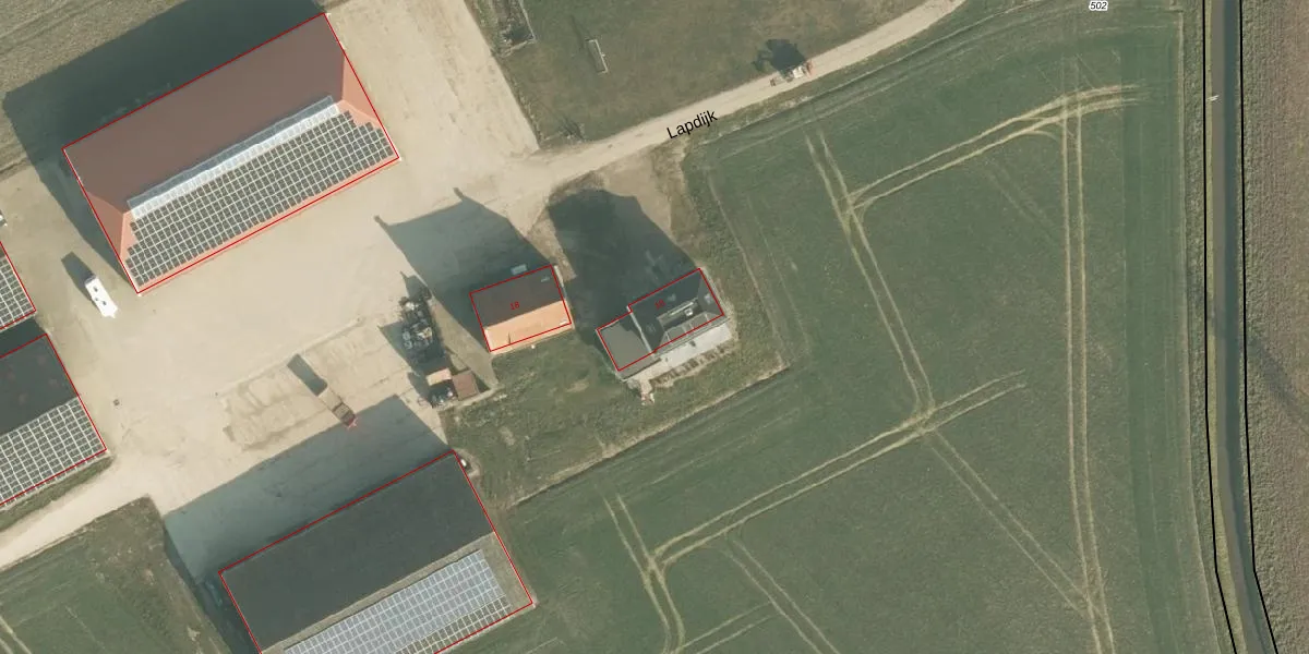 Het perceel waarop Lapdijk 18 staat heeft een oppervlakte van 29,6 ha. Dit is een zeer groot perceel. De perceeloppervlakte wordt geregistreerd door het Kadaster. Gedetailleerde informatie over de maten van dit perceel kunt u vinden in het rapport Kadastrale kaart met maatvoering van Lapdijk 18.