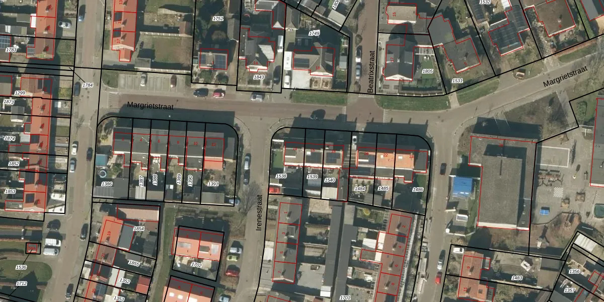 Het perceel waarop Margrietstraat 14 staat heeft een oppervlakte van 241 m². Dit is een middelgroot perceel. De perceeloppervlakte wordt geregistreerd door het Kadaster. Gedetailleerde informatie over de maten van dit perceel kunt u vinden in het rapport Kadastrale kaart met maatvoering van Margrietstraat 14.