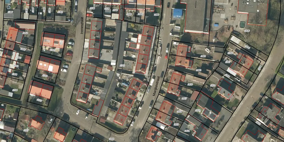 Het perceel waarop Marijkestraat 10 staat heeft een oppervlakte van 3580 m². Dit is een zeer groot perceel. De perceeloppervlakte wordt geregistreerd door het Kadaster. Gedetailleerde informatie over de maten van dit perceel kunt u vinden in het rapport Kadastrale kaart met maatvoering van Marijkestraat 10.