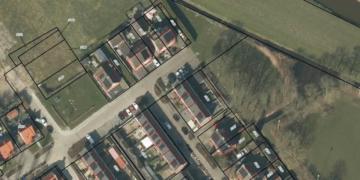 Het perceel waarop Pastoor Lombartsstraat 2 staat heeft een oppervlakte van 632 m². Dit is een groot perceel. De perceeloppervlakte wordt geregistreerd door het Kadaster. Gedetailleerde informatie over de maten van dit perceel kunt u vinden in het rapport Kadastrale kaart met maatvoering van Pastoor Lombartsstraat 2.