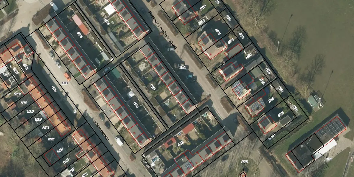 Het perceel waarop Pastoor Lombartsstraat 21 staat heeft een oppervlakte van 905 m². Dit is een groot perceel. De perceeloppervlakte wordt geregistreerd door het Kadaster. Gedetailleerde informatie over de maten van dit perceel kunt u vinden in het rapport Kadastrale kaart met maatvoering van Pastoor Lombartsstraat 21.