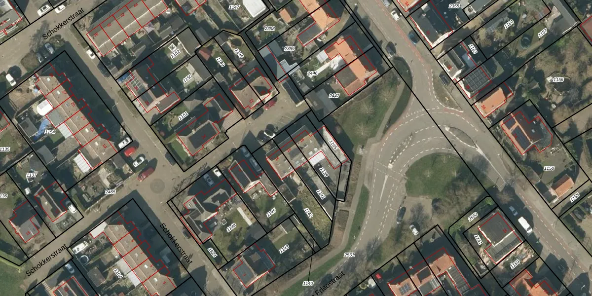 Het perceel waarop Schokkerstraat 16 staat heeft een oppervlakte van 173 m². Dit is een middelgroot perceel. De perceeloppervlakte wordt geregistreerd door het Kadaster. Gedetailleerde informatie over de maten van dit perceel kunt u vinden in het rapport Kadastrale kaart met maatvoering van Schokkerstraat 16.