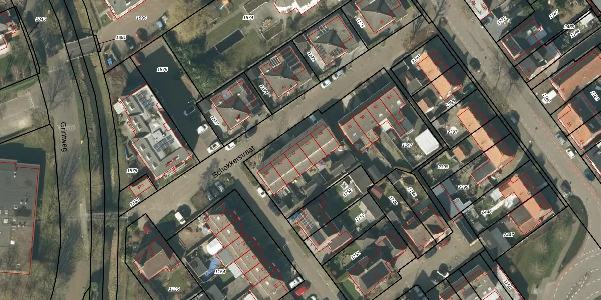 Het perceel waarop Schokkerstraat 42 staat heeft een oppervlakte van 1537 m². Dit is een zeer groot perceel. De perceeloppervlakte wordt geregistreerd door het Kadaster. Gedetailleerde informatie over de maten van dit perceel kunt u vinden in het rapport Kadastrale kaart met maatvoering van Schokkerstraat 42.