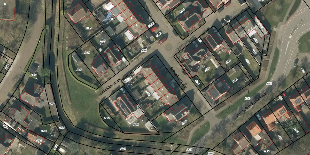 Het perceel waarop Schokkerstraat 9 staat heeft een oppervlakte van 950 m². Dit is een groot perceel. De perceeloppervlakte wordt geregistreerd door het Kadaster. Gedetailleerde informatie over de maten van dit perceel kunt u vinden in het rapport Kadastrale kaart met maatvoering van Schokkerstraat 9.