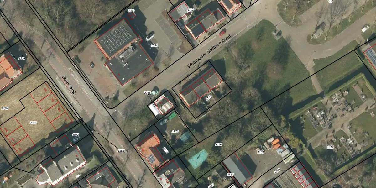 Wethouder Mattheestraat 2 is gelegen op kadastraal perceel ZVB00O1189. Deze kadastrale aanduiding is uniek en wordt gebruikt door het Kadaster om eigendomsrechten en andere zakelijke rechten vast te leggen. Het perceel maakt onderdeel uit van de kadastrale gemeente Zevenbergen.