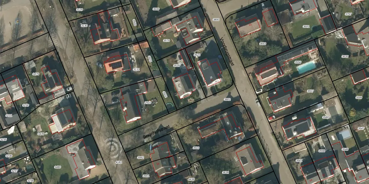 Het perceel waarop Boonhofstraat 1 staat heeft een oppervlakte van 497 m². Dit is een groot perceel. De perceeloppervlakte wordt geregistreerd door het Kadaster. Gedetailleerde informatie over de maten van dit perceel kunt u vinden in het rapport Kadastrale kaart met maatvoering van Boonhofstraat 1.