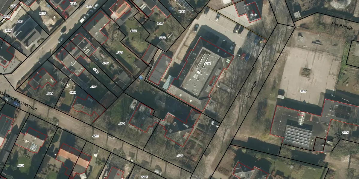 Het perceel waarop Bosstraat 1-11 staat heeft een oppervlakte van 2462 m². Dit is een zeer groot perceel. De perceeloppervlakte wordt geregistreerd door het Kadaster. Gedetailleerde informatie over de maten van dit perceel kunt u vinden in het rapport Kadastrale kaart met maatvoering van Bosstraat 1-11.