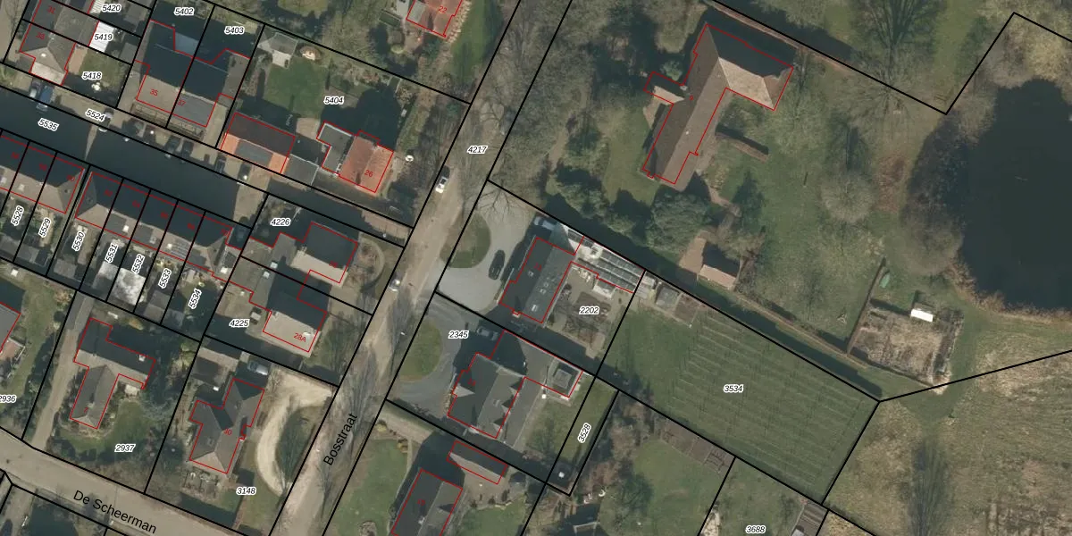 Het perceel waarop Bosstraat 11 staat heeft een oppervlakte van 760 m². Dit is een groot perceel. De perceeloppervlakte wordt geregistreerd door het Kadaster. Gedetailleerde informatie over de maten van dit perceel kunt u vinden in het rapport Kadastrale kaart met maatvoering van Bosstraat 11.
