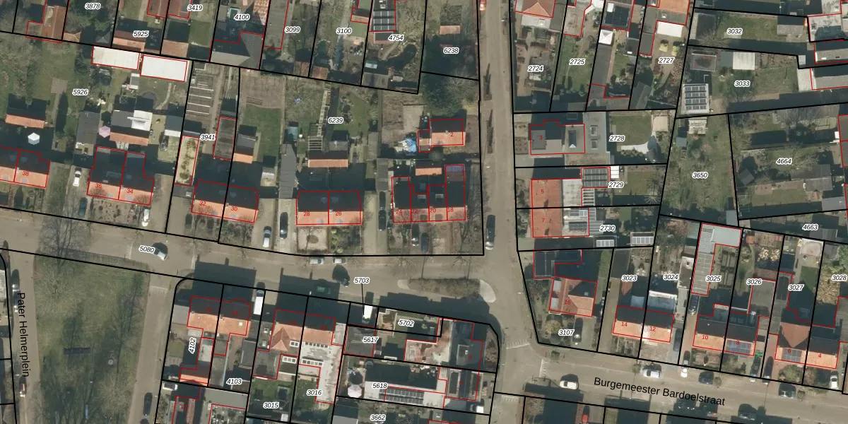 Het perceel waarop Burgemeester Bardoelstraat 22 staat heeft een oppervlakte van 2433 m². Dit is een zeer groot perceel. De perceeloppervlakte wordt geregistreerd door het Kadaster. Gedetailleerde informatie over de maten van dit perceel kunt u vinden in het rapport Kadastrale kaart met maatvoering van Burgemeester Bardoelstraat 22.