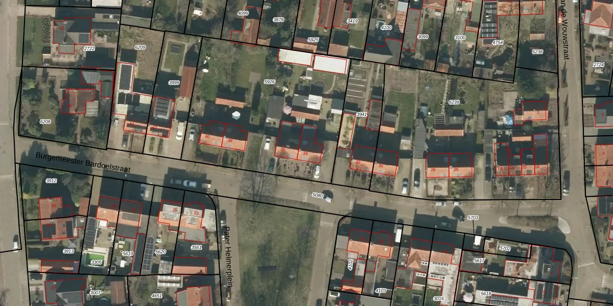 Het perceel waarop Burgemeester Bardoelstraat 34 staat heeft een oppervlakte van 2034 m². Dit is een zeer groot perceel. De perceeloppervlakte wordt geregistreerd door het Kadaster. Gedetailleerde informatie over de maten van dit perceel kunt u vinden in het rapport Kadastrale kaart met maatvoering van Burgemeester Bardoelstraat 34.