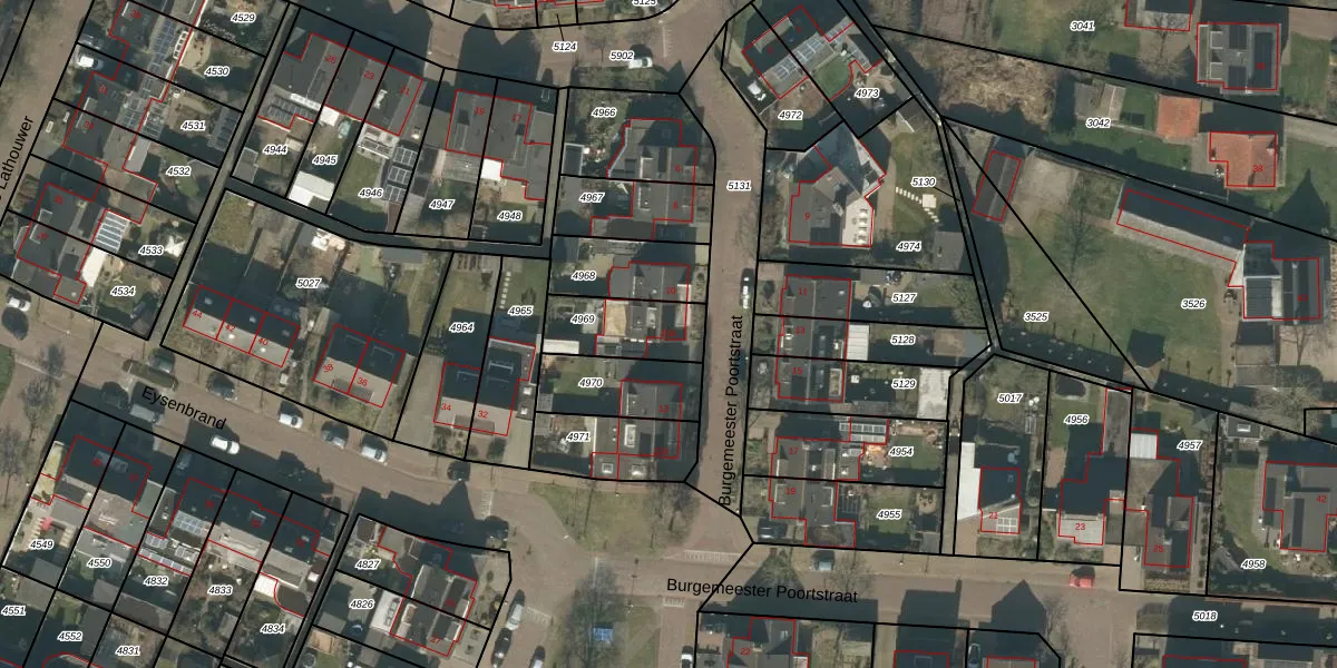 Burgemeester Poortstraat 10-A is gelegen op kadastraal perceel MGT01A4969. Deze kadastrale aanduiding is uniek en wordt gebruikt door het Kadaster om eigendomsrechten en andere zakelijke rechten vast te leggen. Het perceel maakt onderdeel uit van de kadastrale gemeente Moergestel.