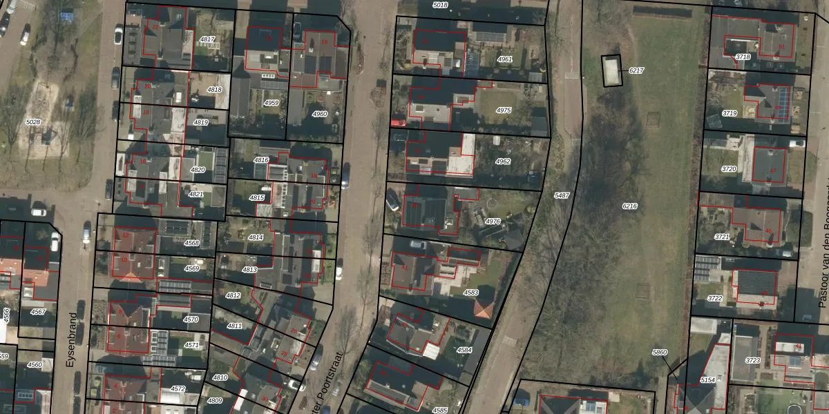 Het perceel waarop Burgemeester Poortstraat 39 staat heeft een oppervlakte van 498 m². Dit is een groot perceel. De perceeloppervlakte wordt geregistreerd door het Kadaster. Gedetailleerde informatie over de maten van dit perceel kunt u vinden in het rapport Kadastrale kaart met maatvoering van Burgemeester Poortstraat 39.