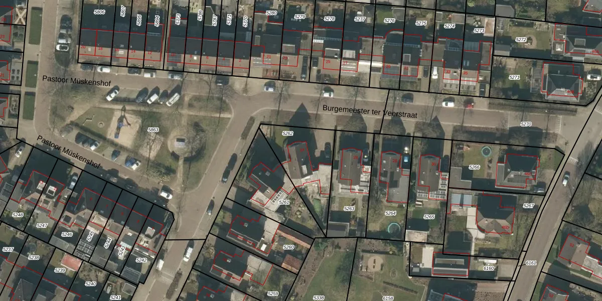 Burgemeester ter Veerstraat 24 is gelegen op kadastraal perceel MGT01A5262. Deze kadastrale aanduiding is uniek en wordt gebruikt door het Kadaster om eigendomsrechten en andere zakelijke rechten vast te leggen. Het perceel maakt onderdeel uit van de kadastrale gemeente Moergestel.