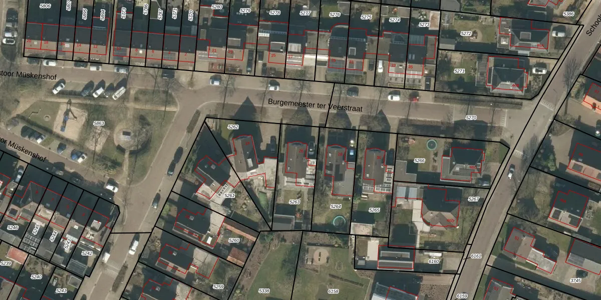 Het perceel waarop Burgemeester ter Veerstraat 26 staat heeft een oppervlakte van 459 m². Dit is een groot perceel. De perceeloppervlakte wordt geregistreerd door het Kadaster. Gedetailleerde informatie over de maten van dit perceel kunt u vinden in het rapport Kadastrale kaart met maatvoering van Burgemeester ter Veerstraat 26.