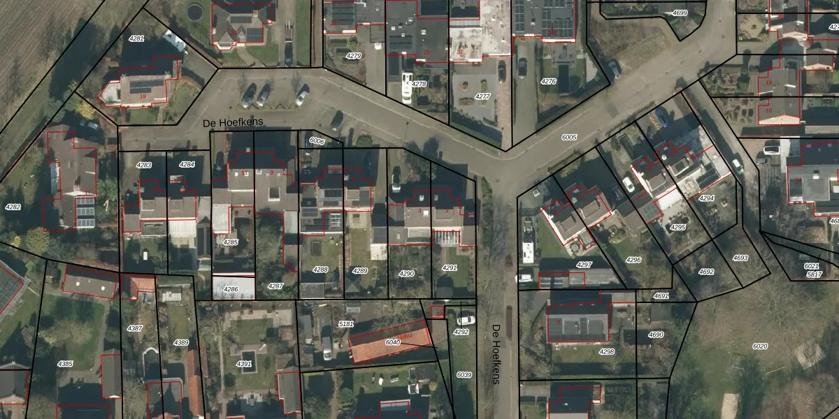 Het perceel waarop De Hoefkens 3 staat heeft een oppervlakte van 362 m². Dit is een groot perceel. De perceeloppervlakte wordt geregistreerd door het Kadaster. Gedetailleerde informatie over de maten van dit perceel kunt u vinden in het rapport Kadastrale kaart met maatvoering van De Hoefkens 3.