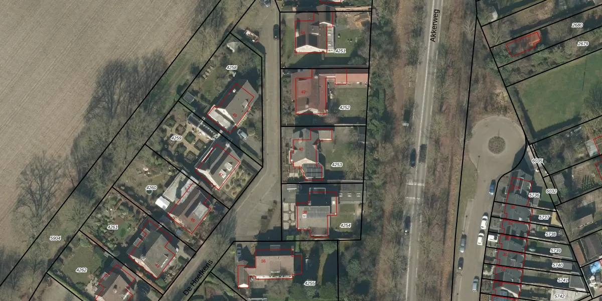 Het perceel waarop De Hoefkens 40 staat heeft een oppervlakte van 526 m². Dit is een groot perceel. De perceeloppervlakte wordt geregistreerd door het Kadaster. Gedetailleerde informatie over de maten van dit perceel kunt u vinden in het rapport Kadastrale kaart met maatvoering van De Hoefkens 40.