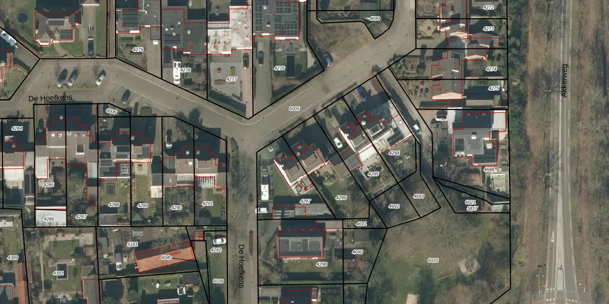 Het perceel waarop De Hoefkens 8 staat heeft een oppervlakte van 447 m². Dit is een groot perceel. De perceeloppervlakte wordt geregistreerd door het Kadaster. Gedetailleerde informatie over de maten van dit perceel kunt u vinden in het rapport Kadastrale kaart met maatvoering van De Hoefkens 8.