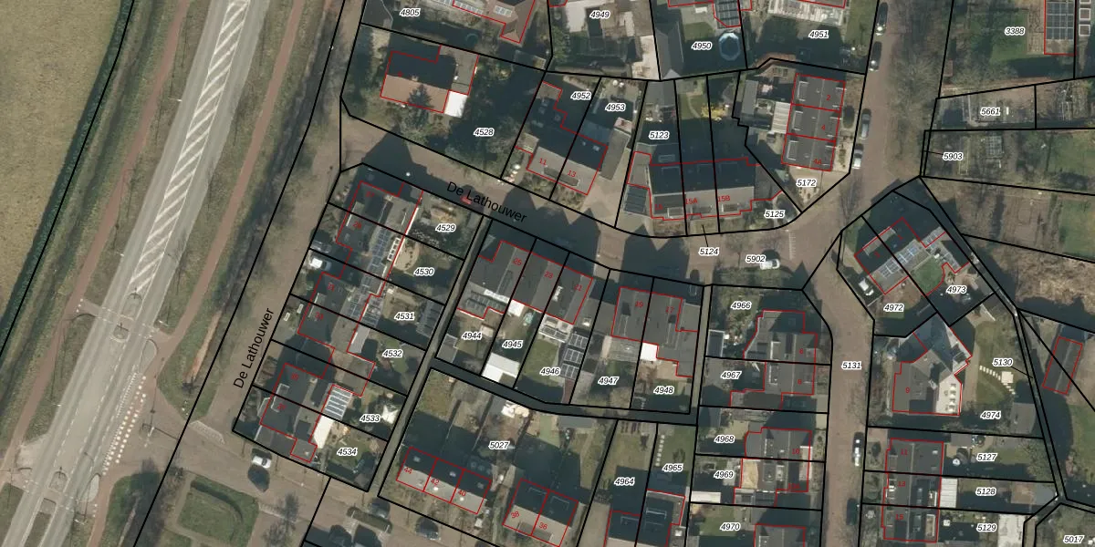 Het perceel waarop De Lathouwer 23 staat heeft een oppervlakte van 180 m². Dit is een middelgroot perceel. De perceeloppervlakte wordt geregistreerd door het Kadaster. Gedetailleerde informatie over de maten van dit perceel kunt u vinden in het rapport Kadastrale kaart met maatvoering van De Lathouwer 23.