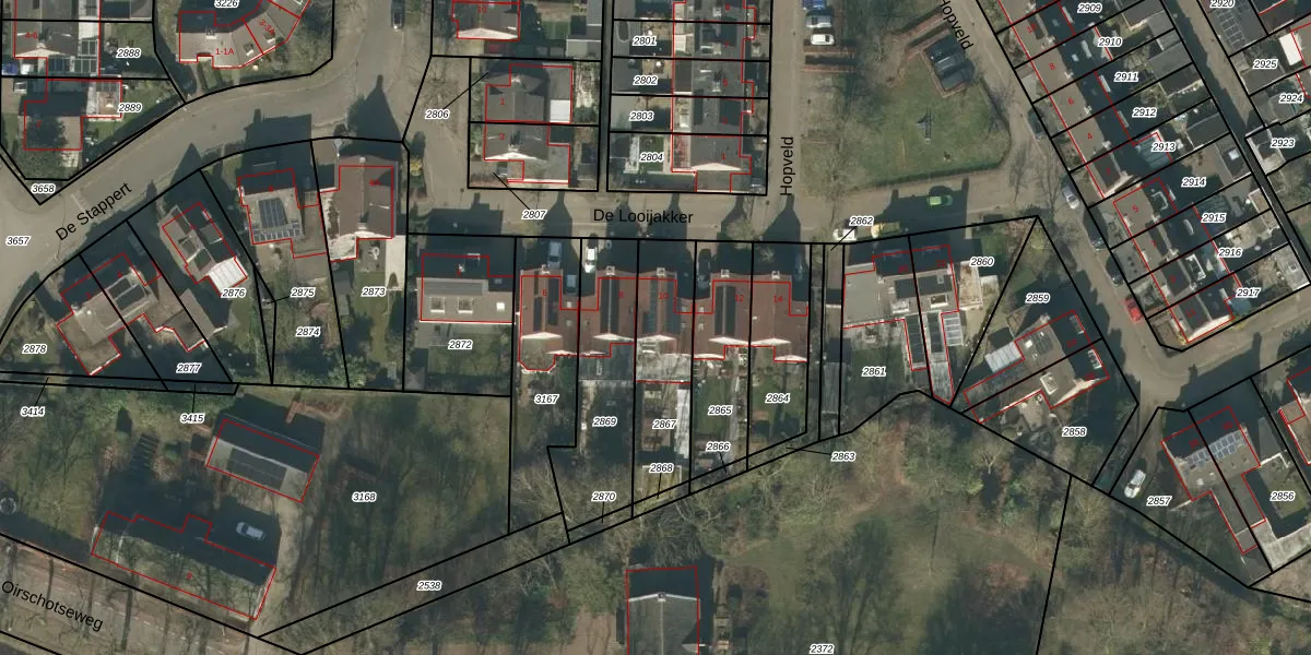 De Looijakker 10 is gelegen op kadastraal perceel MGT01B2867. Deze kadastrale aanduiding is uniek en wordt gebruikt door het Kadaster om eigendomsrechten en andere zakelijke rechten vast te leggen. Het perceel maakt onderdeel uit van de kadastrale gemeente Moergestel.