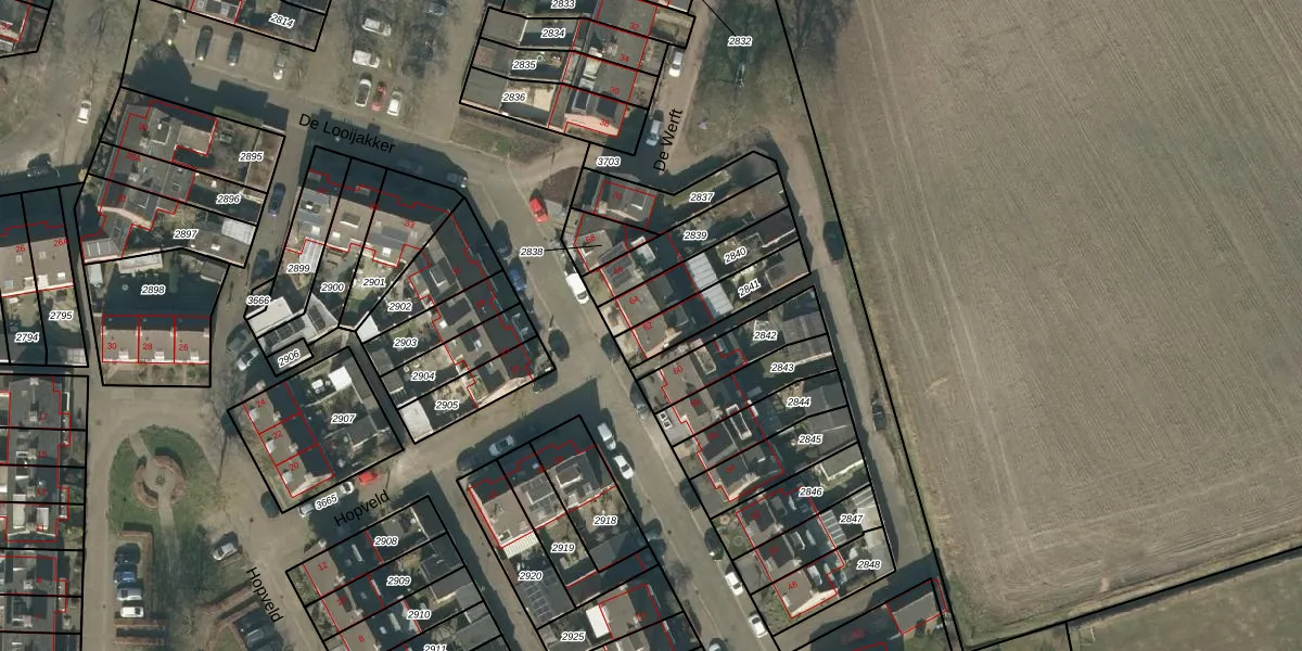 Gebruik de zoekbalk of klik op een perceel voor informatie over de adressen binnen dit perceel.