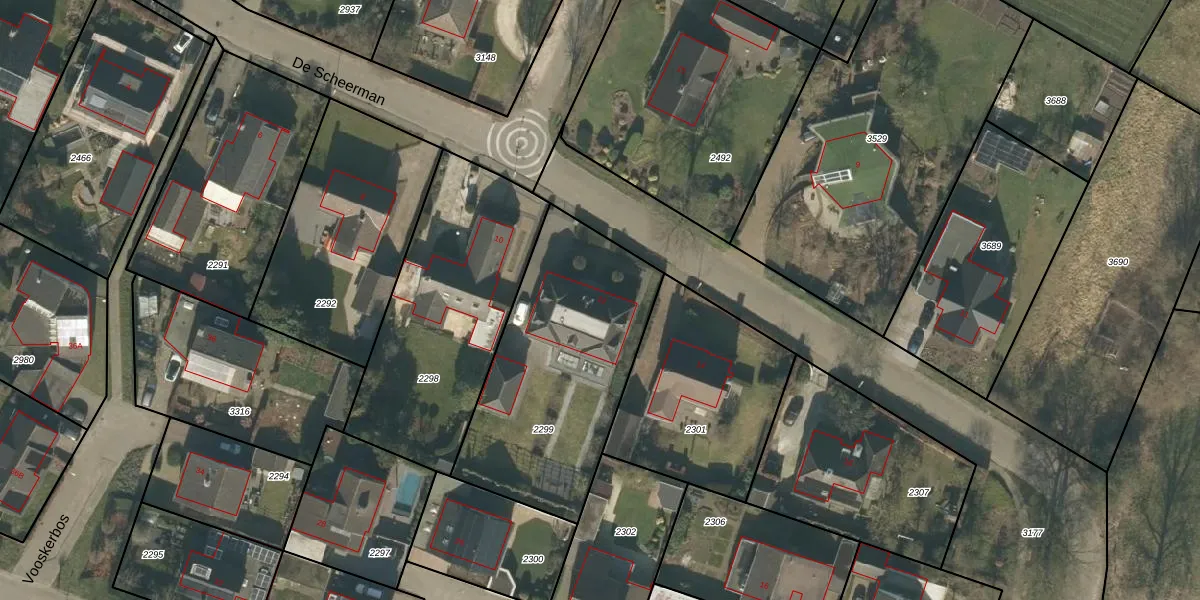 Het perceel waarop De Scheerman 12 staat heeft een oppervlakte van 1034 m². Dit is een zeer groot perceel. De perceeloppervlakte wordt geregistreerd door het Kadaster. Gedetailleerde informatie over de maten van dit perceel kunt u vinden in het rapport Kadastrale kaart met maatvoering van De Scheerman 12.