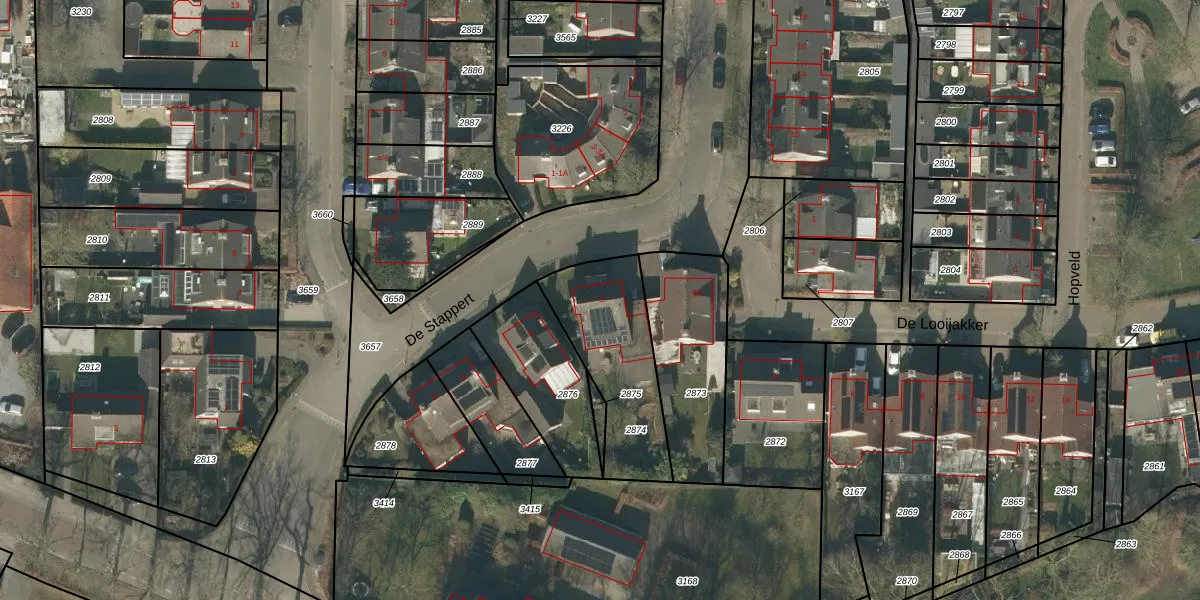 Het perceel waarop De Stappert 8 staat heeft een oppervlakte van 456 m². Dit is een groot perceel. De perceeloppervlakte wordt geregistreerd door het Kadaster. Gedetailleerde informatie over de maten van dit perceel kunt u vinden in het rapport Kadastrale kaart met maatvoering van De Stappert 8.