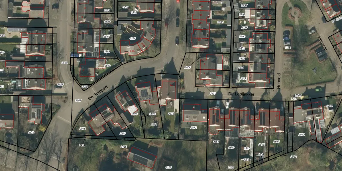 Gebruik de zoekbalk of klik op een perceel voor informatie over de adressen binnen dit perceel.