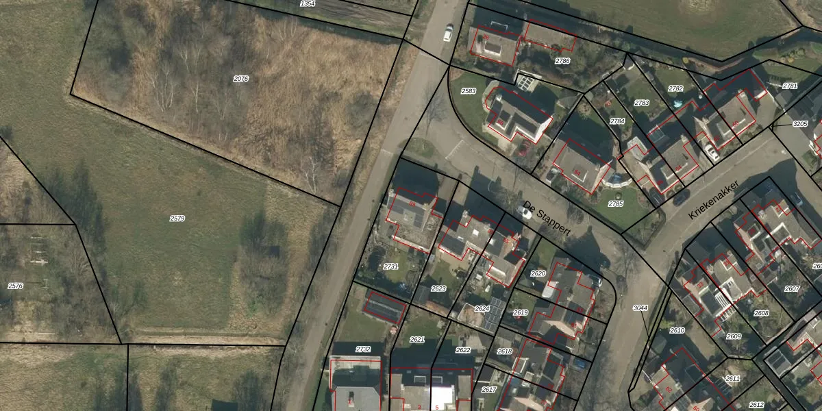 Het perceel waarop De Stappert 89 staat heeft een oppervlakte van 496 m². Dit is een groot perceel. De perceeloppervlakte wordt geregistreerd door het Kadaster. Gedetailleerde informatie over de maten van dit perceel kunt u vinden in het rapport Kadastrale kaart met maatvoering van De Stappert 89.