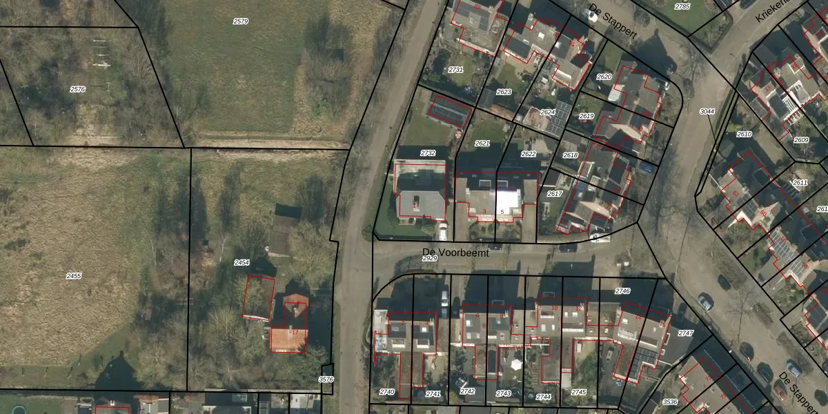 Het perceel waarop De Voorbeemt 1 staat heeft een oppervlakte van 590 m². Dit is een groot perceel. De perceeloppervlakte wordt geregistreerd door het Kadaster. Gedetailleerde informatie over de maten van dit perceel kunt u vinden in het rapport Kadastrale kaart met maatvoering van De Voorbeemt 1.