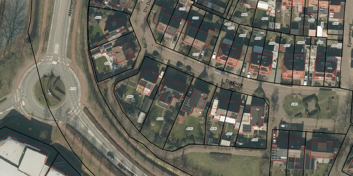 Het perceel waarop D'n Duyp 21 staat heeft een oppervlakte van 689 m². Dit is een groot perceel. De perceeloppervlakte wordt geregistreerd door het Kadaster. Gedetailleerde informatie over de maten van dit perceel kunt u vinden in het rapport Kadastrale kaart met maatvoering van D'n Duyp 21.