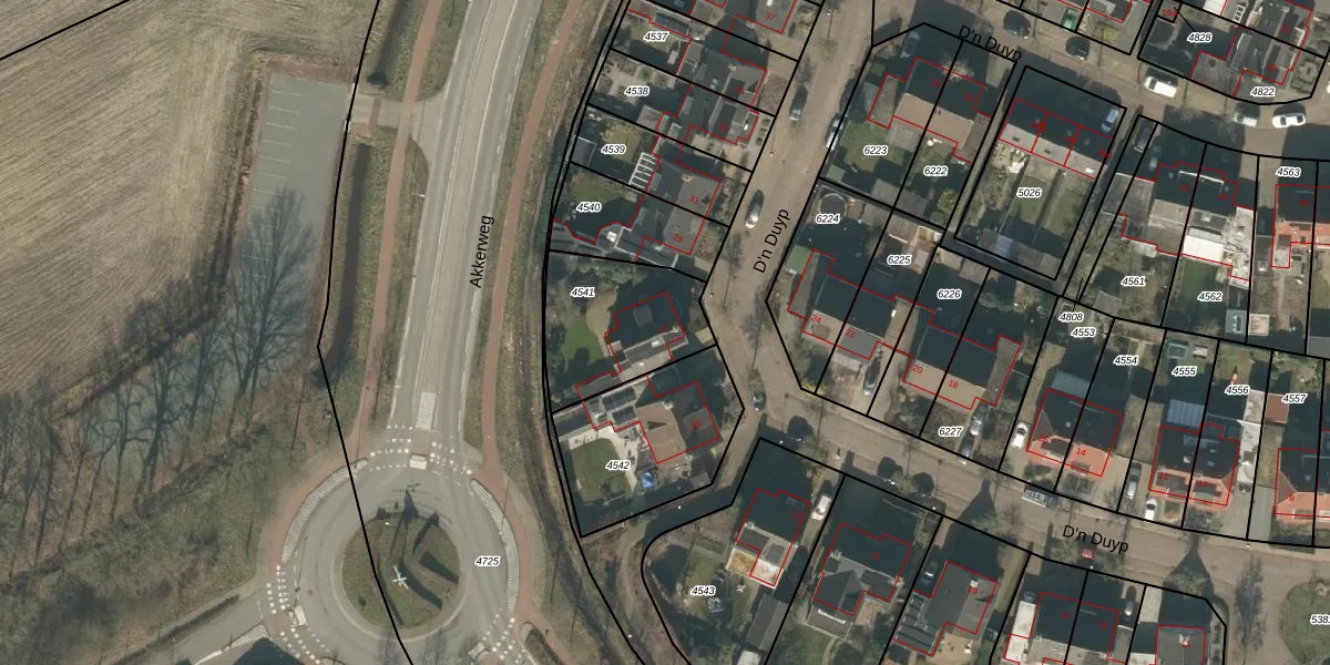 Het perceel waarop D'n Duyp 27 staat heeft een oppervlakte van 434 m². Dit is een groot perceel. De perceeloppervlakte wordt geregistreerd door het Kadaster. Gedetailleerde informatie over de maten van dit perceel kunt u vinden in het rapport Kadastrale kaart met maatvoering van D'n Duyp 27.