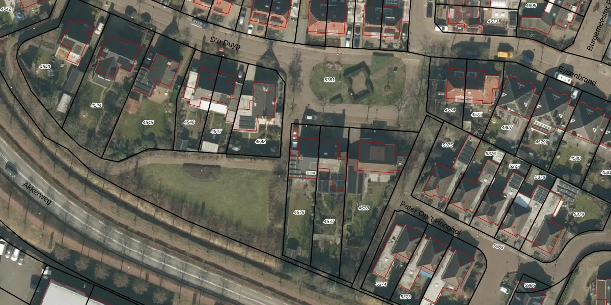 D'n Duyp 9 is gelegen op kadastraal perceel MGT01A4576. Deze kadastrale aanduiding is uniek en wordt gebruikt door het Kadaster om eigendomsrechten en andere zakelijke rechten vast te leggen. Het perceel maakt onderdeel uit van de kadastrale gemeente Moergestel.
