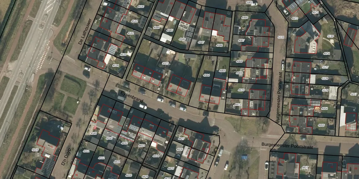 Het perceel waarop Eysenbrand 36 staat heeft een oppervlakte van 965 m². Dit is een groot perceel. De perceeloppervlakte wordt geregistreerd door het Kadaster. Gedetailleerde informatie over de maten van dit perceel kunt u vinden in het rapport Kadastrale kaart met maatvoering van Eysenbrand 36.