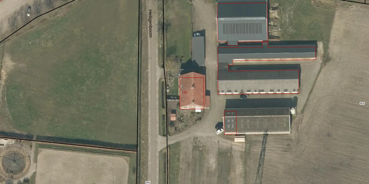 Het perceel waarop Heiligenboom 8 staat heeft een oppervlakte van 3,3 ha. Dit is een zeer groot perceel. De perceeloppervlakte wordt geregistreerd door het Kadaster. Gedetailleerde informatie over de maten van dit perceel kunt u vinden in het rapport Kadastrale kaart met maatvoering van Heiligenboom 8.