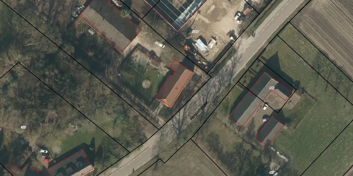 Het perceel waarop Heuvelstraat 25 staat heeft een oppervlakte van 1,4 ha. Dit is een zeer groot perceel. De perceeloppervlakte wordt geregistreerd door het Kadaster. Gedetailleerde informatie over de maten van dit perceel kunt u vinden in het rapport Kadastrale kaart met maatvoering van Heuvelstraat 25.