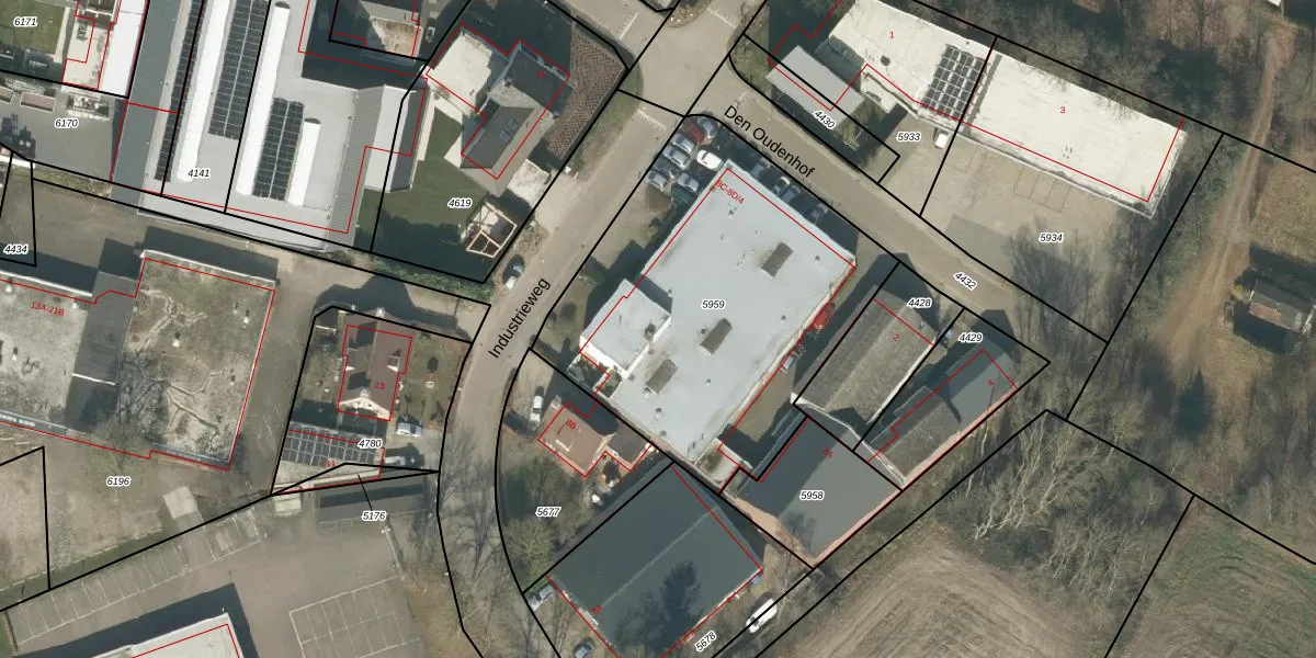 Industrieweg 8-D is gelegen op kadastraal perceel MGT01A5959. Deze kadastrale aanduiding is uniek en wordt gebruikt door het Kadaster om eigendomsrechten en andere zakelijke rechten vast te leggen. Het perceel maakt onderdeel uit van de kadastrale gemeente Moergestel.